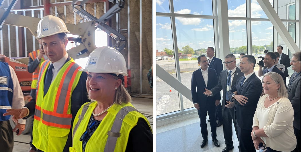 By the time Secretary Buttigieg left office, over 22,000 projects that he and USDOT had funded through the IIJA were completed from a federal standpoint. For example, one of the first of these completed projects was the Lehigh Valley International Airport (ABE)’s terminal modernization project. Secretary Buttigieg had awarded $5 million in IIJA funding to this project through USDOT’s brand new Airport Terminal Program, and the project was completed on time and on budget, which the Secretary celebrated in July 2023 (Image 2.3).