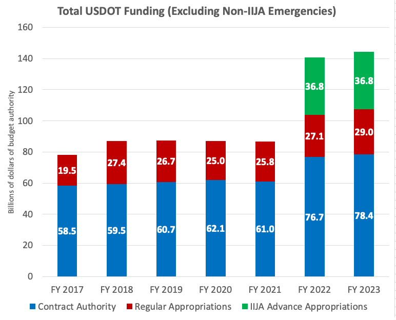To illustrate how much USDOT’s budgetary responsibilities expanded during Secretary Buttigieg’s tenure, Chart 2.1 shows that USDOT’s funding was 85% higher in the 2023 fiscal year than in 2017.